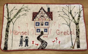 Description: Large cream suitcase Antler Brand full of personal possessions including opera scores and unique opera cushions with sentimental value Eugine Onegin and Hansel & Gretel and others..